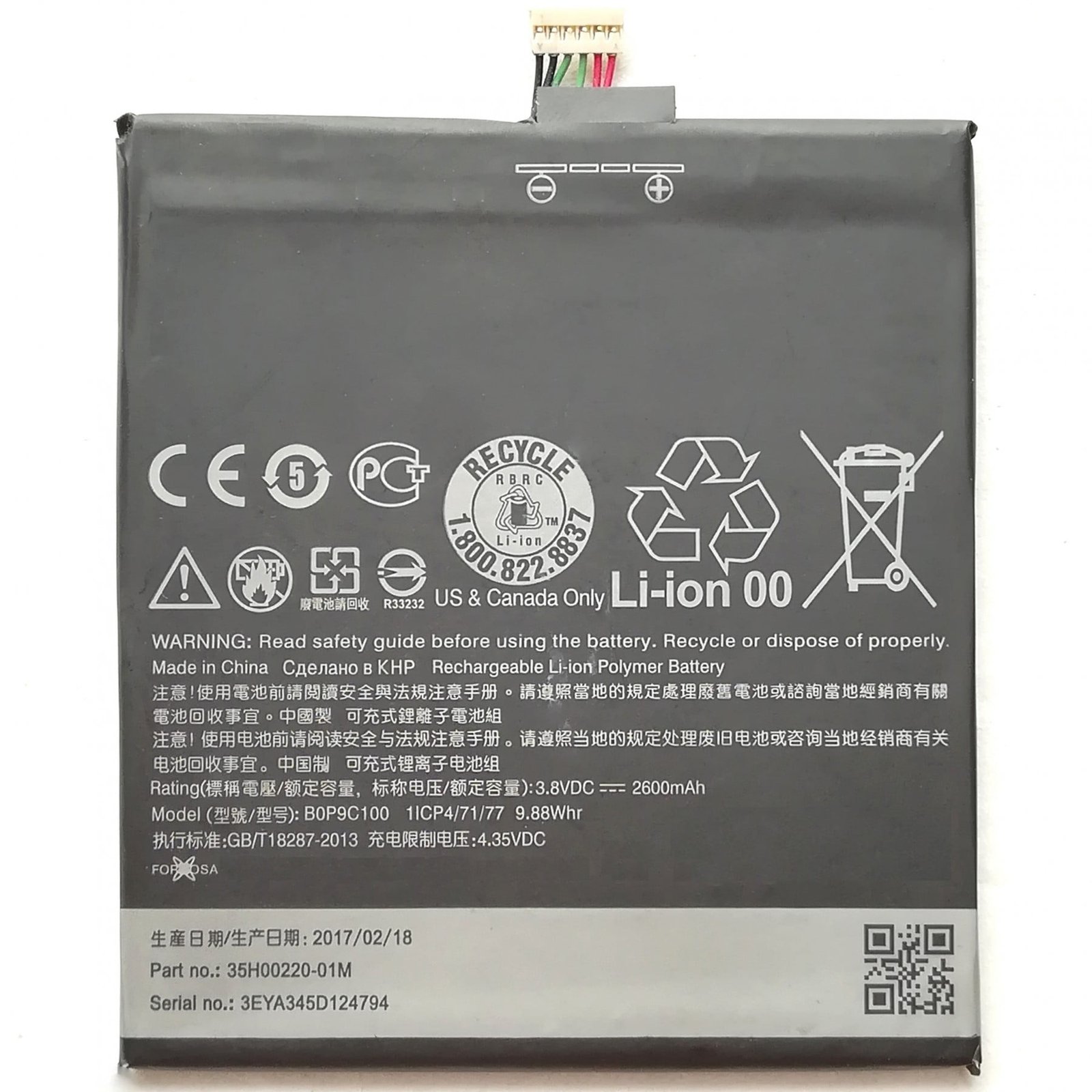 HTC Desire 816 – Battery Li-Ion-Polymer B0P9C100 2600mAh (MOQ:50 Pcs)